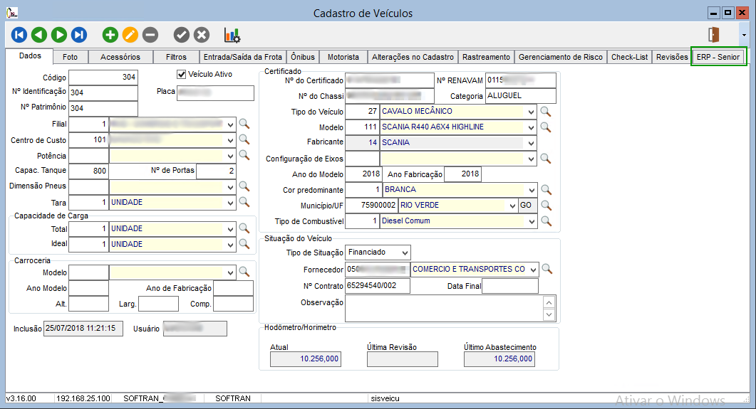 O cadastro de veículo próprio (veículos da frota) é realizado no Gestão de Frotas – FMS e integrado para o Gestão Empresarial | ERP.