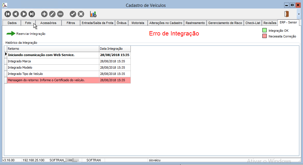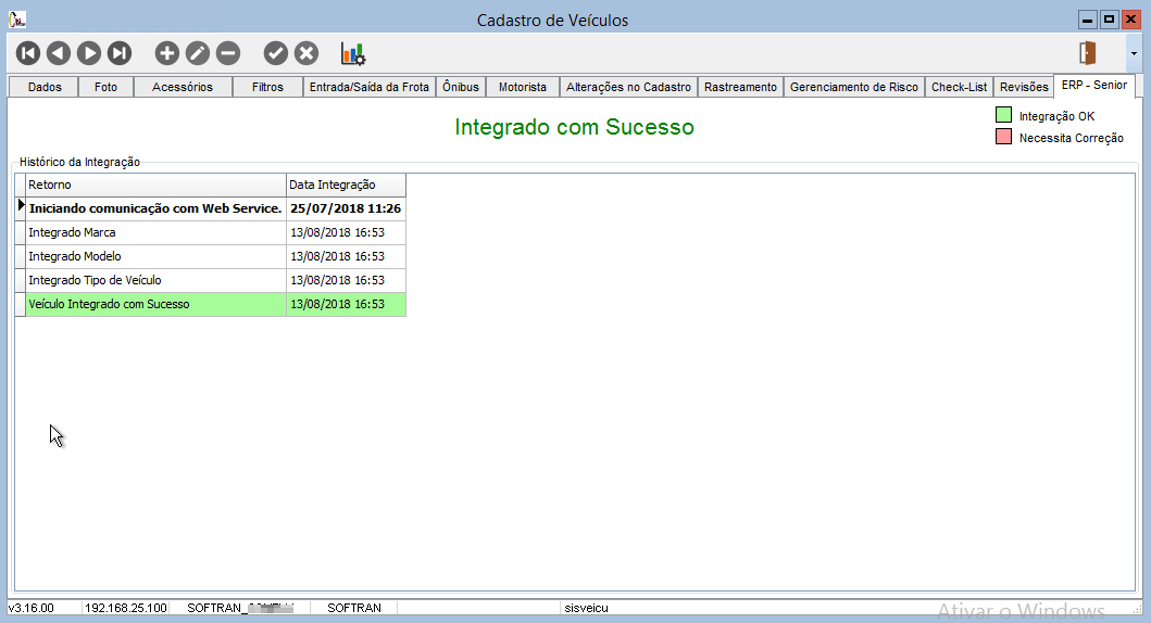 Após o cadastro a integração é gerada automaticamente no momento de salvar o registro. Além do veículo, são integrador os dados de Modelo, Marca e Tipo do Veículo.