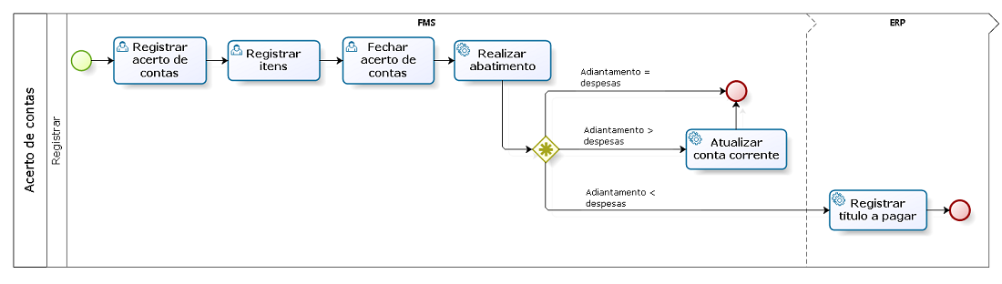 Para abastecimentos externos pagos à vista, o processo é pelo acerto de contas.