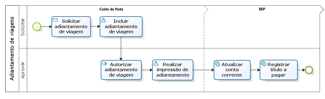 A solicitação de adiantamento de viagem inicia na gestão de frotas.