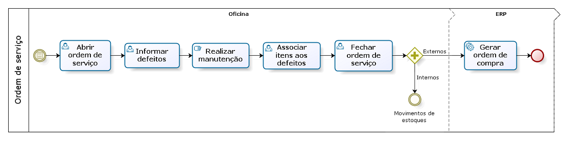 O processo serve para empresas que possuem oficina e realizam a manutenção em seus veículos. Nesse caso, as empresas geralmente possuem estoque de peças e lubrificantes e efetuam os serviços solicitados, baixando os produtos consumidos do estoque.
