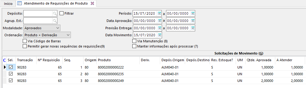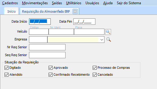 Atualizar as situações das requisições do almoxarifado quando houver movimentação no ERP Senior: