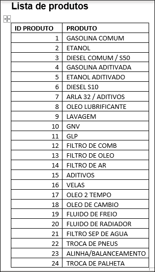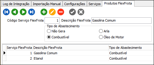 Na guia Produtos FlexFrota, deverão ser cadastrados os produtos que serão importados na integração FlexFrota, conforme produtos disponibilizados pela FlexFrota.