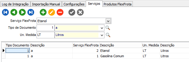 Na guia Serviços, deverão ser configurados os produtos com o tipo de documento e unidade de medida.