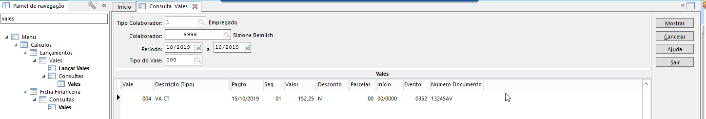No Gestão de Pessoas | HCM na rotina de Vales será realizado um lançamento da integração do Senior Logística