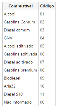 - Combustíveis: Informe o Item de Compra e Item TruckPag (conforme tabela abaixo)