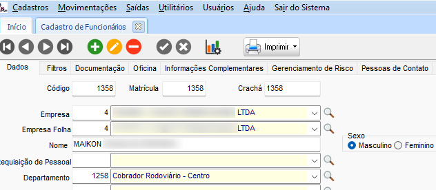 Se necessário, o número do crachá do funcionário pode ser consultado em Cadastros > Funcionários > Funcionários.