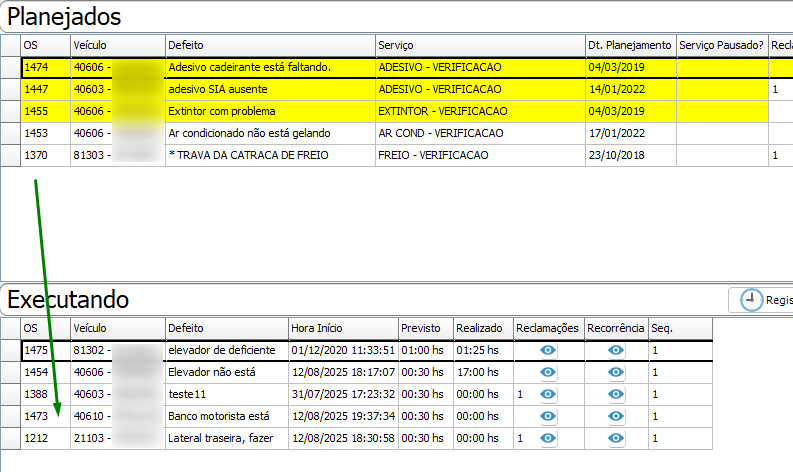 - Planejados: Essa situação listará todos os veículos que estiverem com o aviso de revisão emitido e manutenção vencida.