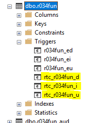 - Neste momento, o CBDS irá ler as tabelas cadastradas na tabela Definição das Tabelas de Replicação para Cloud (RTC_REPLICATIONDEF) e irá criar triggers para cada uma das tabelas. Essas triggers irão monitorar as operações de Insert, Update e Delete, e inserir as pendências na tabela de Pendências de Replicação (RTC_PENDENCIES).