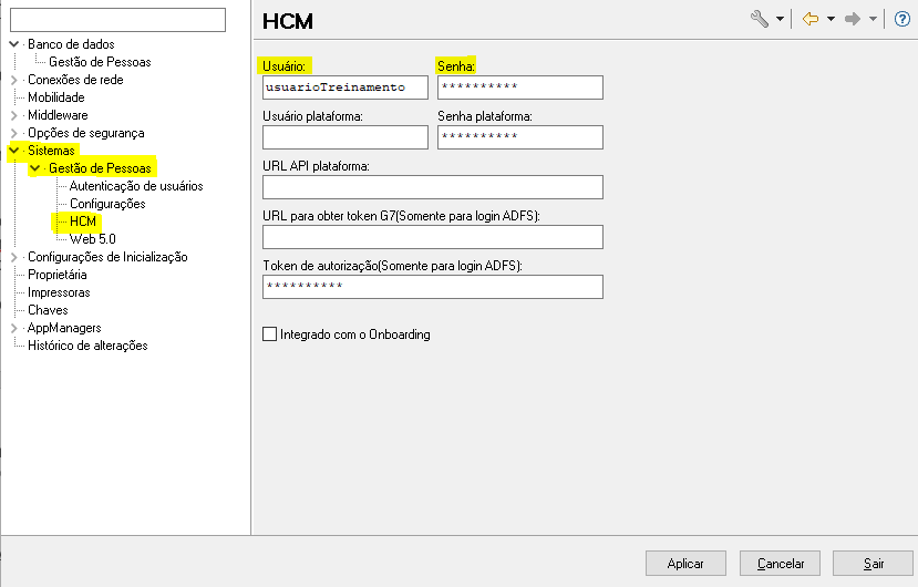- O usuário configurado no passo anterior deve ter permissão no módulo Treinamento e nas telas a seguir: