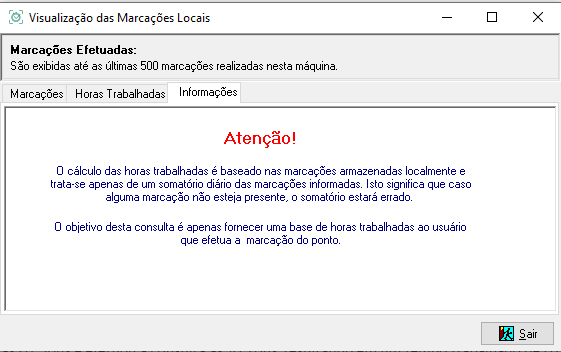 Desta forma, sempre que uma marcação estiver faltando, o somatório dos horários não será correto. No entanto, existe uma exceção para este fato que é a seguinte: Para as marcações do dia atual, o Captura Ponto Portaria 373 sempre fará o somatório das horas até o horário corrente.