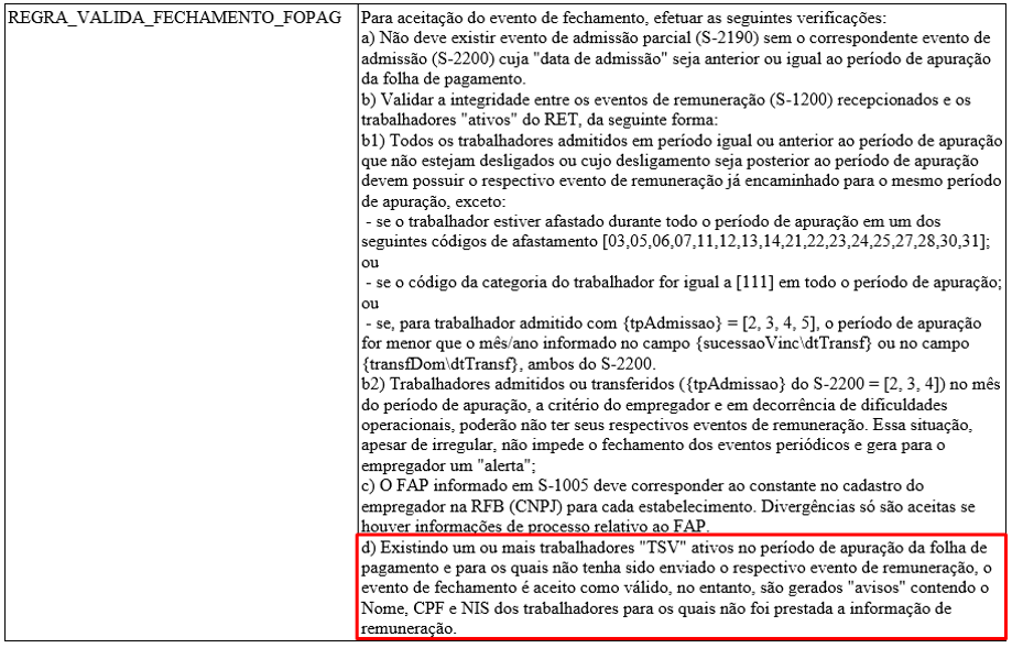 No retorno do leiaute S-1299, o usuário poderá se deparar com duas críticas: