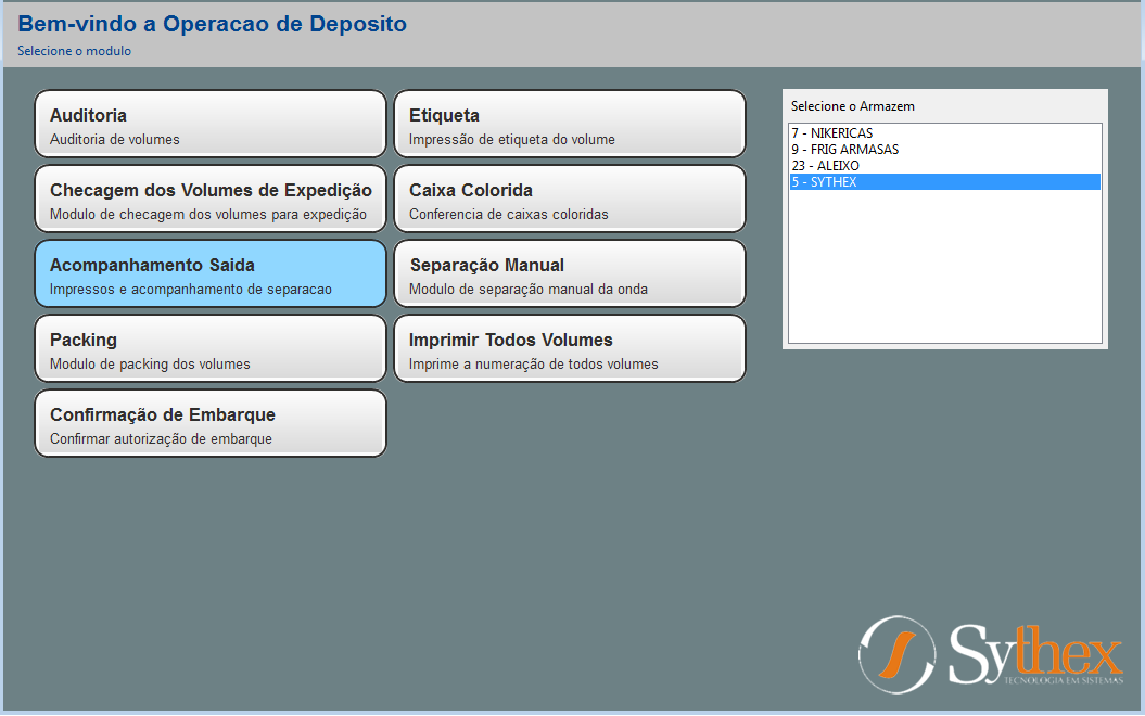 Menu: Operação de Depósito / Acompanhamento Saída.