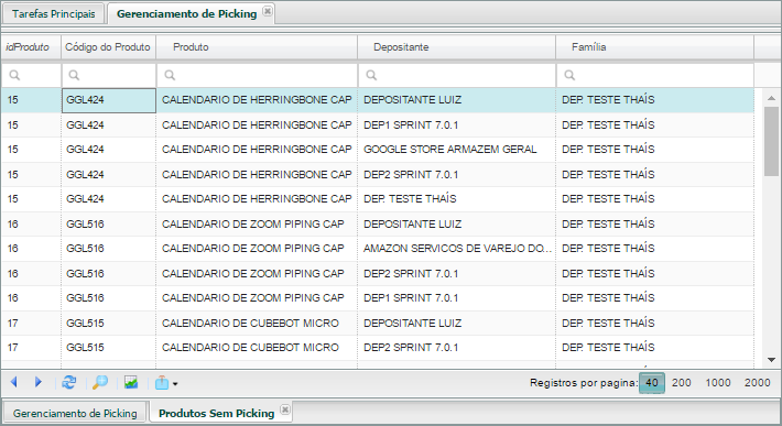 Este botão não requer nenhum registro selecionado. Ele trará a visão de todos os produtos cadastrados no sistema que não possuem nenhum picking, desde que seu depositante esteja configurado para trabalhar com picking.