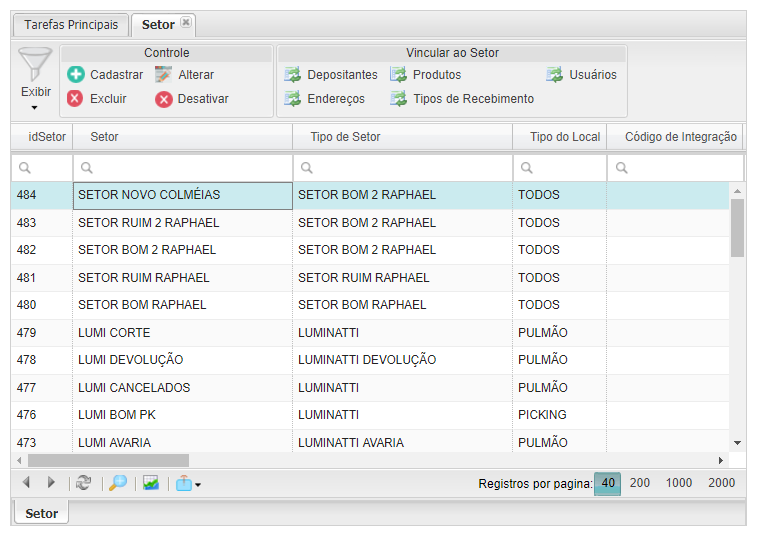 - Todos: permite associar ao setor os tipos de endereço (pulmão e/ou picking)