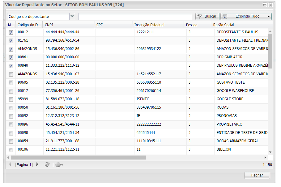 Abrirá janela para vincular o Depositante ao Setor selecionado.