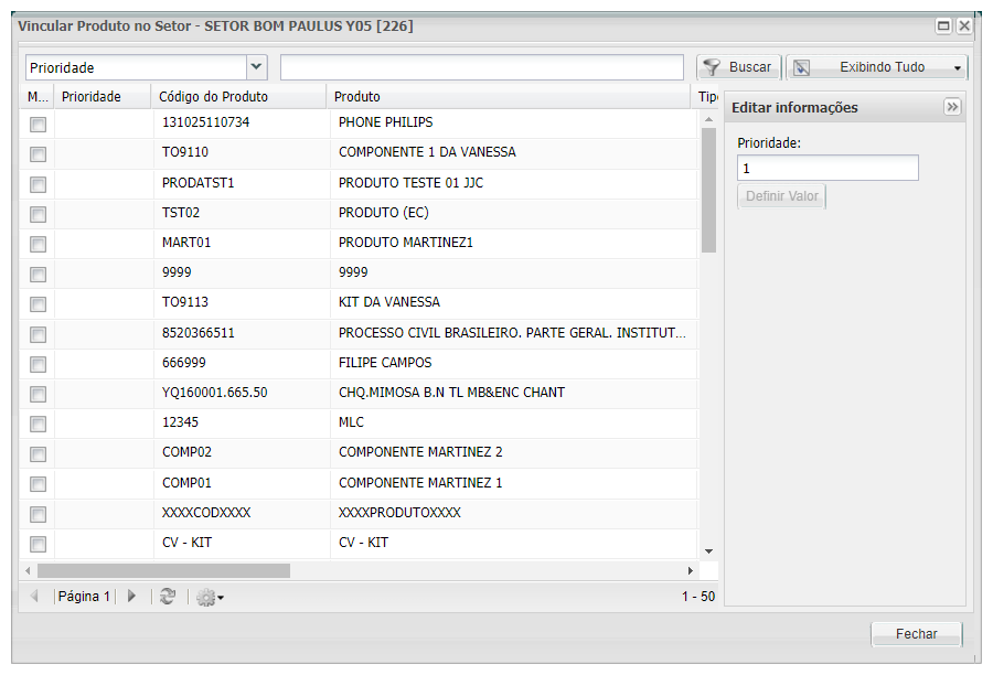 Abrirá janela para vincular os Locais de Armazenagem ao Setor selecionado.