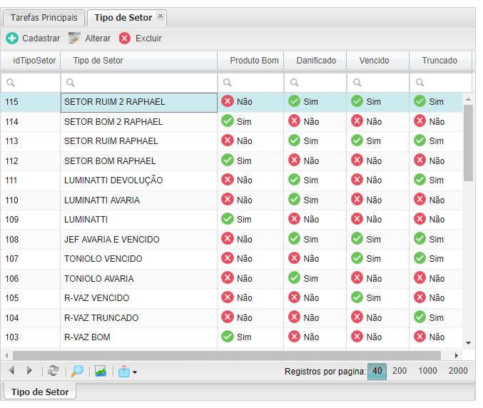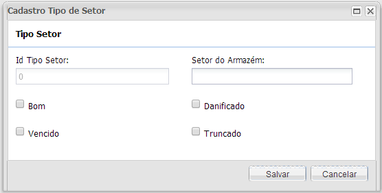 O Cadastro de Tipo de Setor é responsável por organizar os setores por tipo Bom, Vencido, Danificado e/ou Truncado permitindo alocar apenas produtos que estejam com estado compatível com o Tipo de Setor associado ao Setor.