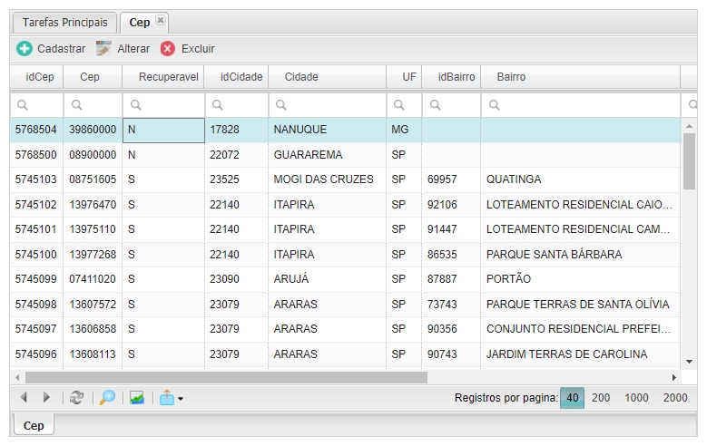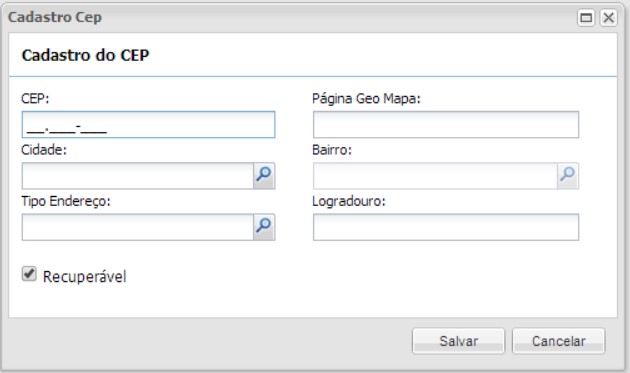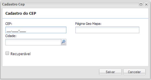 Esta tela é responsável em agrupar todos os Códigos de Endereçamento Postal (CEP), que por sua vez será vinculado ao Endereço do Cadastro de Entidade.