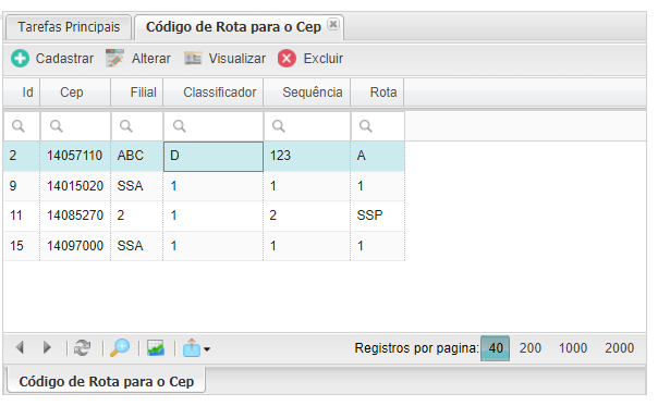 Menu: Cadastro > Dados Geográficos > Código de Rota para o CEP