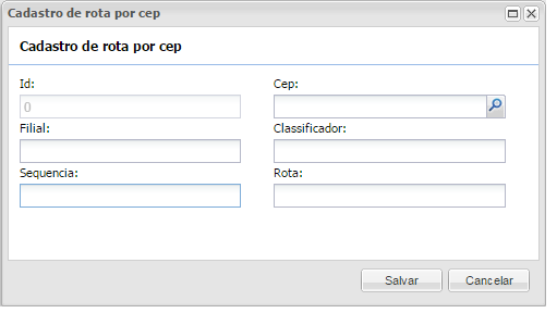 Esta tela é responsável por informar por CEP, os dados utilizados para a Integração de Rota.