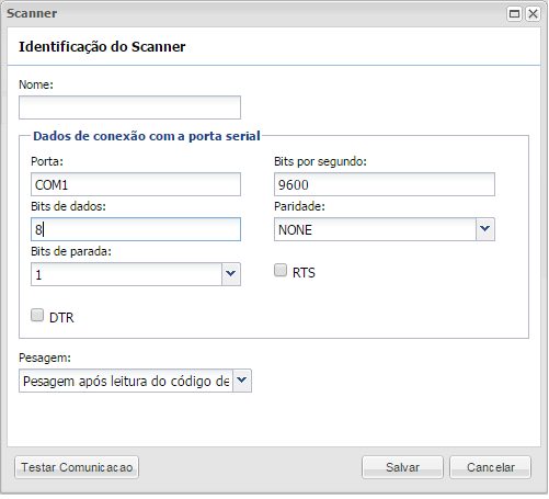 - Porta: O campo vem preenchido COM1 como defaut.