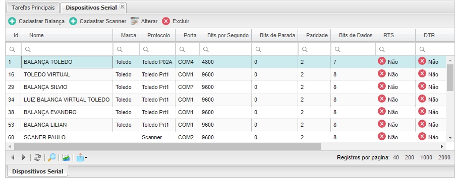 Menu: Cadastro > Dispositivos Serial