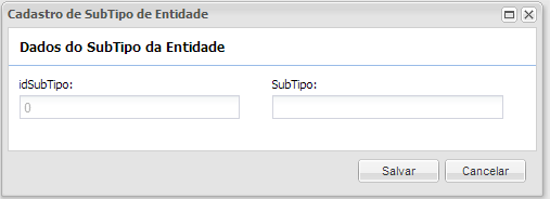 É responsável pelo cadastro do SubTipo da Entidade que será vinculado ao Cadastro de Entidade.