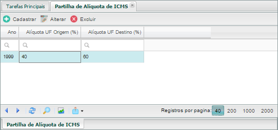 Menu: Cadastro > Fiscal > Partilha de Alíquota de ICMS.