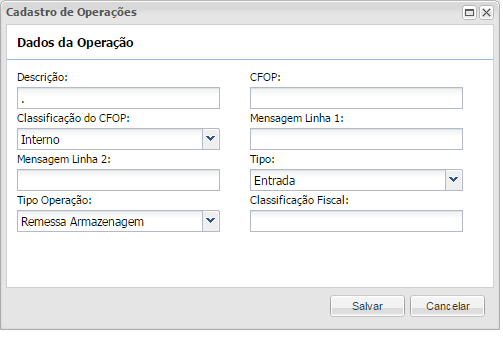 - O sistema controlará dois novos Tipos de Operação(CFOP):