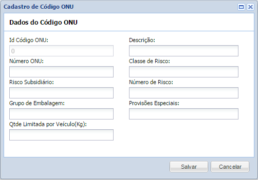 É responsável pelo cadastro de ONU (Produtos Perigosos) que será selecionado no cadastro do Produto, onde o Código ONU ou Número ONU para produtos químicos é o número de série de 4 dígitos, dado ao artigo ou substância química, de acordo com o sistema das Nações Unidas.