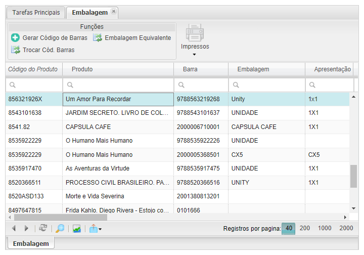 Será possível visualizar os cadastros de Embalagens que será vinculado ao Cadastro do Produto.