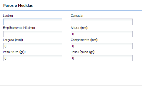 - Empilhamento Máximo: número máximo de camadas suportado pela embalagem do produto, geralmente é informado o mesmo valor do campo “Camada”.