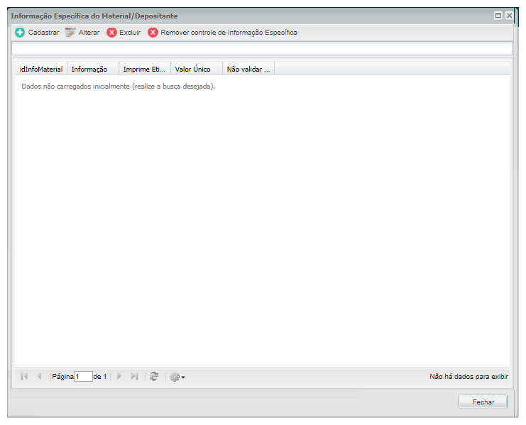 - Valor Único: indica não permitirá duplicar a Informação Específica por depositante. Um produto pode conter mais de uma informação específica associada, porém o sistema considera obrigatório que pelo menos uma delas seja considerada única.