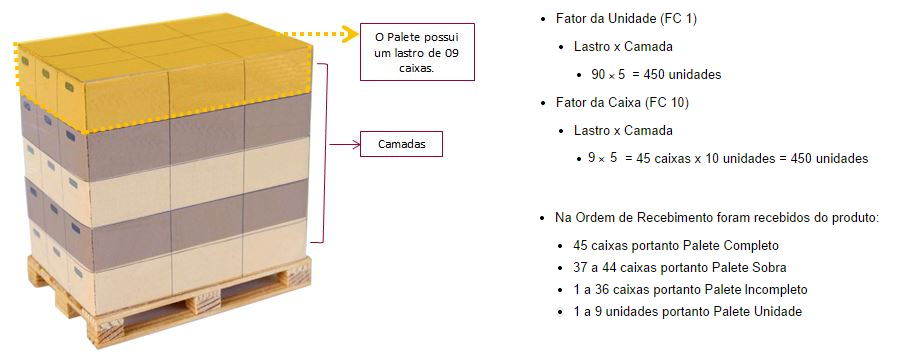 - Exemplo: Ao receber um gabinete de computador, um HD, duas memórias, uma placa mãe, um cooler e seus respectivos cabos, ao invés de alocar cada um dos materiais em uma posição palete serão montados computadores juntamente de seus componentes e alocados , ao invés de alocar várias peças e alocar o gabinete com seus componentes. O sistema irá efetuar cálculos para o melhor local a ser armazenado não considerará a cubagem de todos os materiais, mas sim a cubagem do agrupador que no exemplo será o gabinete, mas será considerado o peso de todos os componentes envolvidos na montagem.