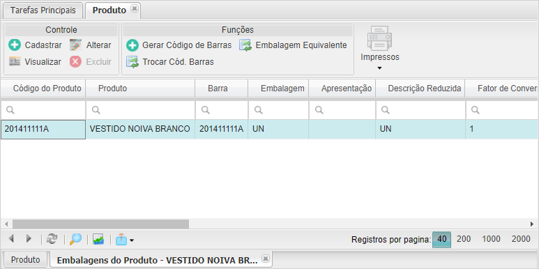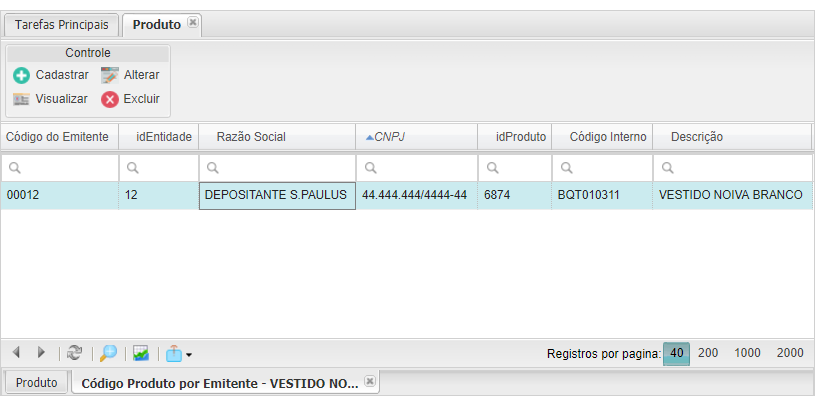 - Não será possível cadastrar dois códigos de produto para o mesmo conjunto Produto/Emitente;