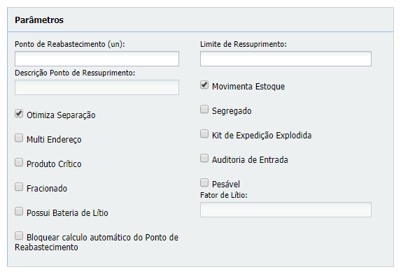 - Multi Endereço: indica se uma unidade do produto irá ocupar mais de um endereço por vez. Utilizado para produtos grandes.