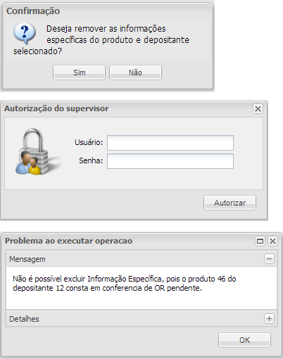 Botão: Depositante / Informação Específica / Remover Controle de Informação Específica