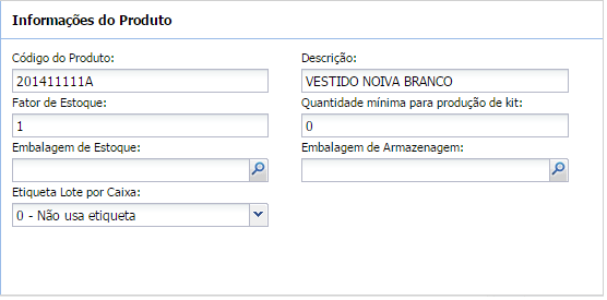 - Código do Produto: código único editável. É utilizado para identificação do produto no armazém.
