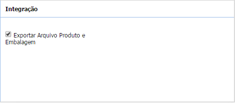 - Exportar Arquivo Produto e Embalagem: exportará arquivo de produto e embalagem com novas inserções ou alterações de produto ou embalagem. Por default o parâmetro estará ativo.