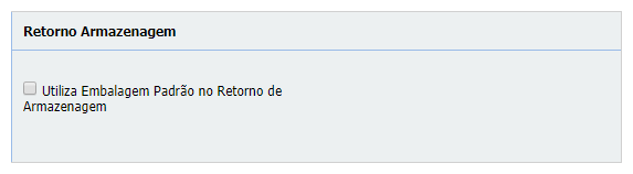 - Utiliza Embalagem Padrão no Retorno de Armazenagem: ... a embalagem do produto foi realizada em fator de conversão maior, isto é, em caixa, mas o Retorno Simbólico das embalagens dos produtos será em unidade.
