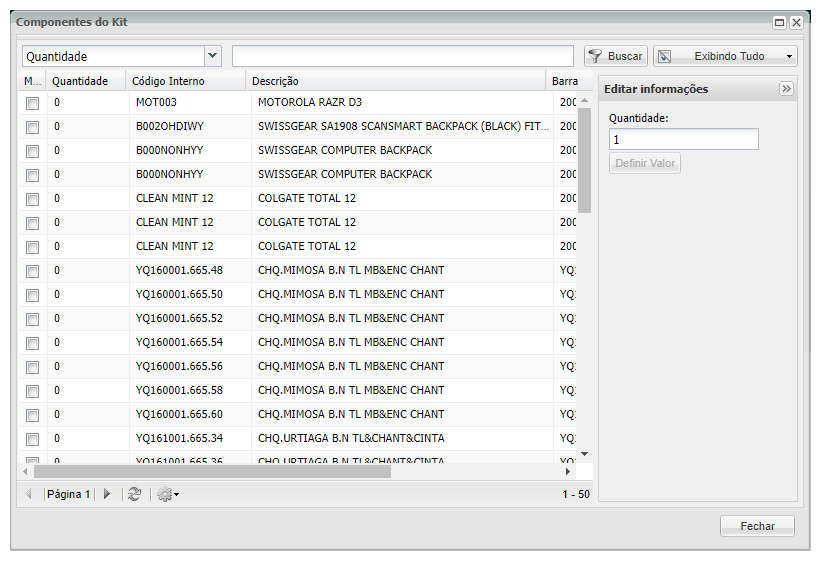 Tela onde será possível agrupar vários produtos, ao registro selecionado, formando um terceiro produto.