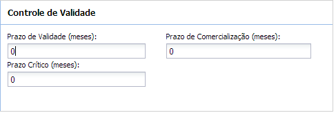- Prazo de Validade (meses): período fixado em meses, mediante a informação do recebimento, gerado na conferência de entrada, prazo máximo para o produto vencer.