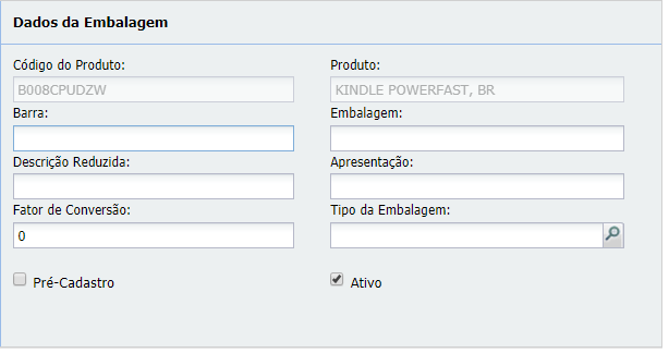 - Não Validar: não será validado o cadastro de produto e/ou embalagem se um destes cadastros estiverem marcados com pré-cadastro.