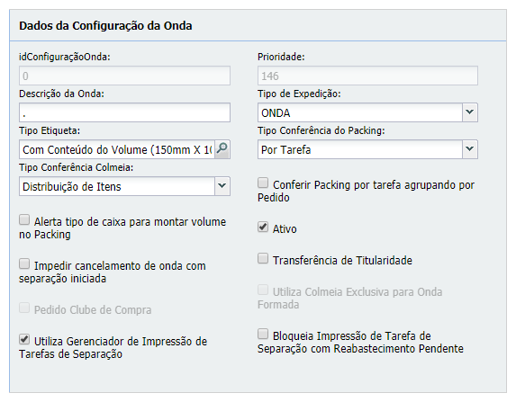 - Imprimir Etiqueta do Transportador: a partir da versão 7.2.0.0, este parâmetro não será alterado enquanto existir onda em andamento usando esta configuração.
