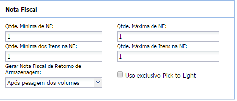 - A partir da versão 7.3.0.0, caso o parâmetro Uso exclusivo Pick to Light esteja marcado, o sistema não permitirá usar o valor “2 – Em todos volumes” para o parâmetro Imprimir Nota Fiscal (Danfe) na Montagem dos Volumes.