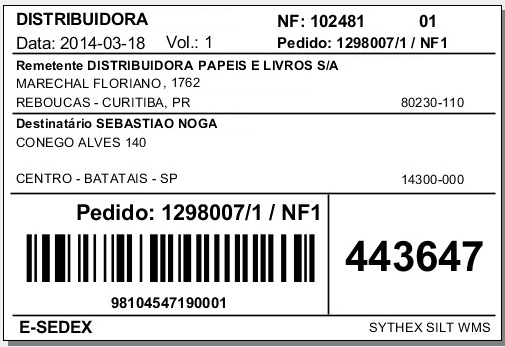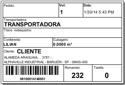 - A primeira composição do Código de Barras utilizará 7 dígitos do campo Pedido + 4 dígitos do Volume + 7 dígitos da Rota com referência ao campo Roteiro da Nota Fiscal.