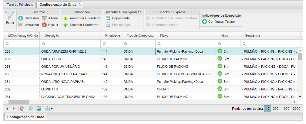 A Configuração da Onda é responsável pela manipulação dos parâmetros responsáveis pela separação, conferência, auditoria e coleta dos materiais alocados até a doca.