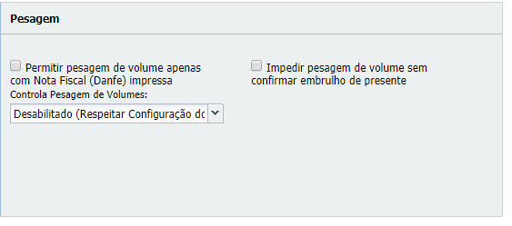 - Permitir pesagem de volume apenas com Nota Fiscal (Danfe) impressa: a partir da versão 7.3.0.0, irá obrigar que o volume tenha a nota fiscal (Danfe) impressa, antes de realizar a pesagem.