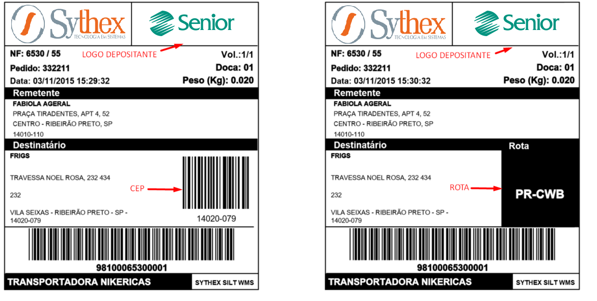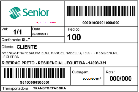Etiqueta criada a partir da versão 7.8.0.0, que buscará o Logo na tela de Cadastro de Entidade (Tipo: Depositante) e imprimirá o CEP, mas se tiver Rota cadastrada, na tela Código de Rota para o CEP, imprimirá a Rota.